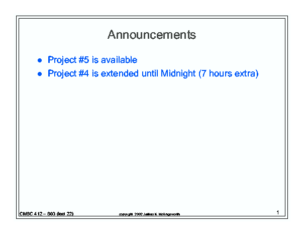 Operating Systems (Spring '03) - Class 23 (May 1, 2003)