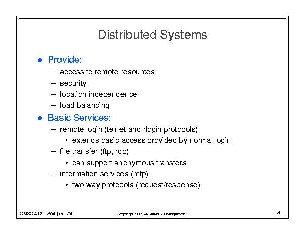 Operating Systems (Spring '04) - Class 24 (May 4, 2004)