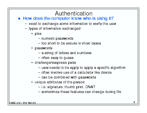 Operating Systems (Spring '10) - Class 21 (April 27, 2010)