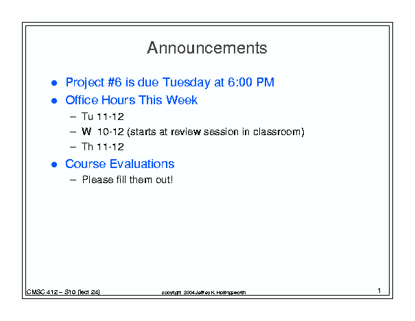 Operating Systems (Spring '10) - Class 25 (May 11, 2010)