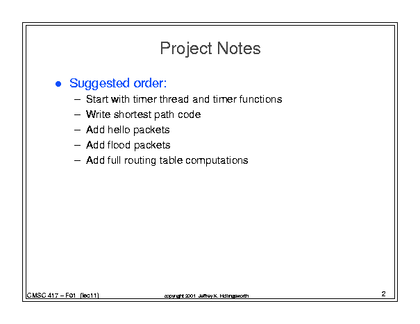 Computer Networks (Fall '01) - Class 12 (October 11, 2001)
