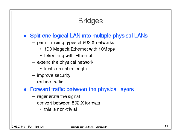 Computer Networks (Fall '01) - Class 19 (November 6, 2001)