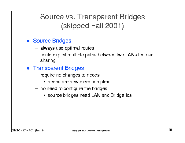 Computer Networks (Fall '01) - Class 19 (November 6, 2001)
