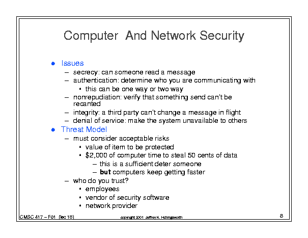 Computer Networks (Fall '01) - Class 20 (November 13, 2001)