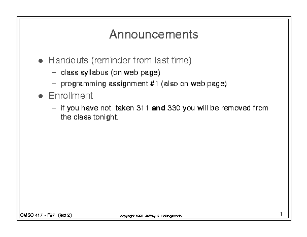 CMSC 417 - Class 2 (September 4, 1997)