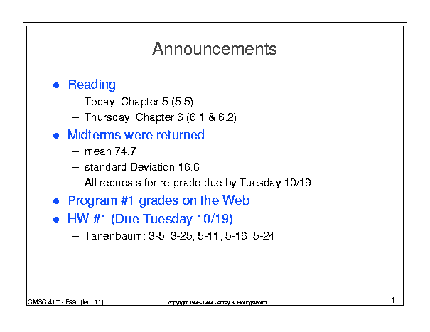 Computer Networking (Fall 1999) - Class 11 (October 12, 1999)