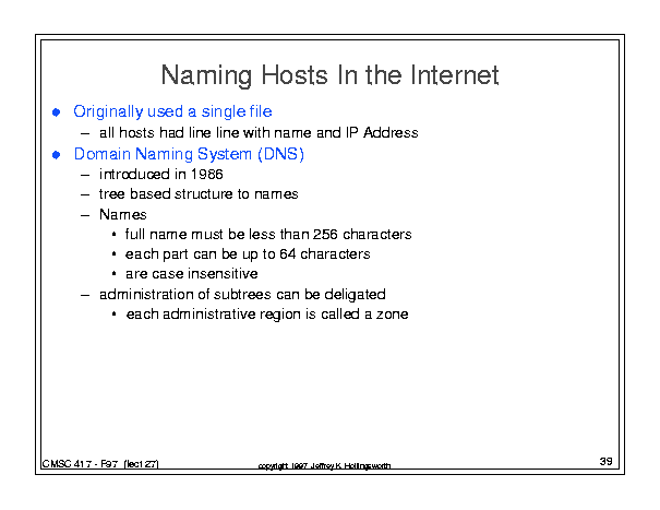Computer Networking (Fall 1999) - Class 27 (December 9, 1999)