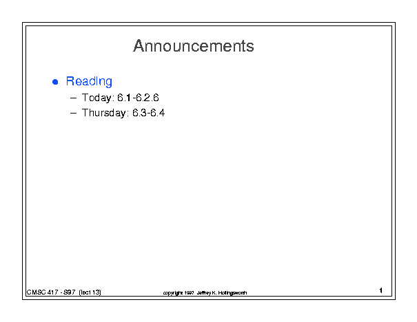 CMSC 417 - Class 13 (March 18, 1997)