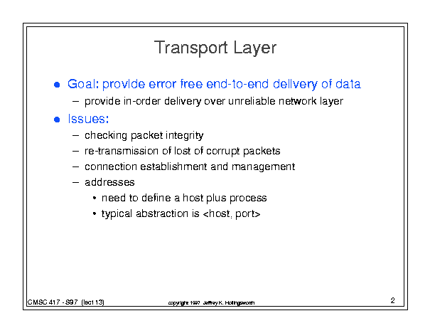 CMSC 417 - Class 13 (March 18, 1997)