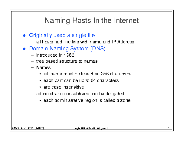 CMSC 417 - Class 23 (May 1, 1997)