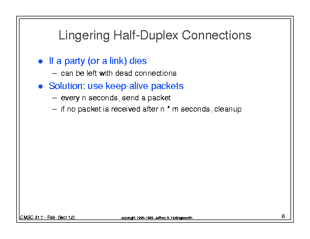 Computer Networking (Fall 1999) - Class 12 (October 14, 1999)