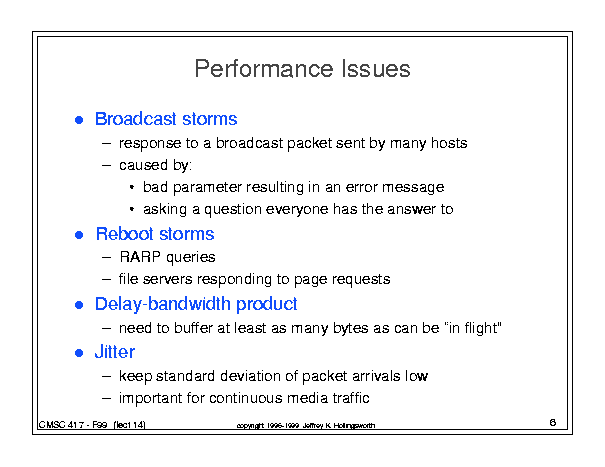 Computer Networking (Fall 1999) - Class 14 (October 21, 1999)