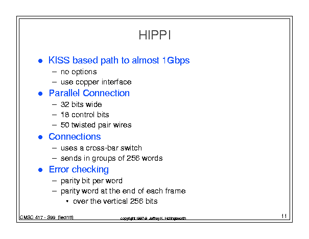 Computer Networking (Fall 1999) - Class 19 (November 9, 1999)