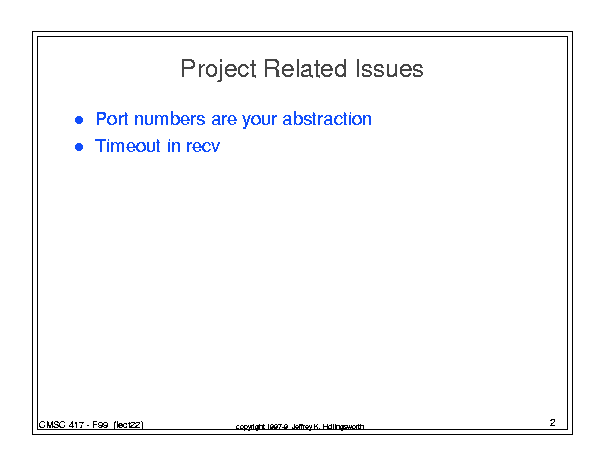 Computer Networking (Fall 1999) - Class 22 (November 23, 1999)