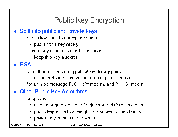 Computer Networking (Fall 1999) - Class 27 (December 9, 1999)
