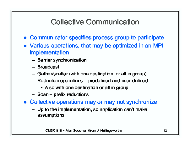 High Performance Computing (Fall '02) - Class 4 (September 12, 2002)