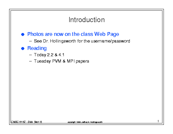 Copyright 1999 Jeffrey K. Hollingsworth. All rights reserved.