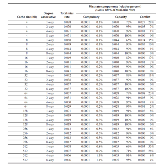 Different types of misses: Before we look at optimizations for reducing the miss rate, we shall look at the ‗3C‘ model and discuss the various types of misses. We know that miss rate is simply the fraction of cache accesses that result in a miss—that is, the number of accesses that miss in the cache divided by the number of accesses. In order to gain better insight into the causes of miss rates, the three C model sorts all misses into three simple categories: