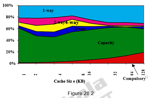 Figures 28.1 and 28.2 give the various miss rates for different cache sizes. Reducing any of these misses should reduce the miss rate. However, some of them can be contradictory. Reducing one may increase the other. We will also discuss about a fourth miss, called the coherence miss in multiprocessor systems later on.
