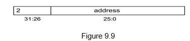 Now, to the subset of instructions already discussed, we shall add a jump instruction. The jump instruction looks somewhat similar to a branch instruction but computes the target PC differently and is not conditional. Like a branch, the low order 2 bits of a jump address are always 00. The next lower 26 bits of this 32-bit address come from the 26-bit immediate field in the instruction, as shown in Figure 9.9. The upper 4 bits of the address that should replace the PC come from the PC of the jump instruction plus 4. Thus, we can implement a jump by storing into the PC the concatenation of the upper 4 bits of the current PC + 4 (these are bits 31:28 of the sequentially following instruction address), the 26-bit immediate field of the jump instruction and the bits 00.