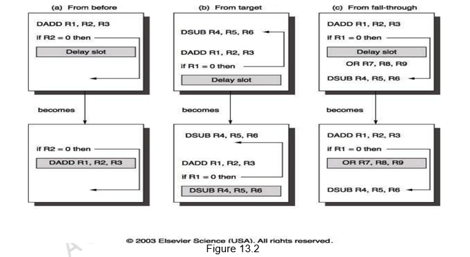 Figure 13.2 shows the three different ways of filling in instructions in the branch delay slots.