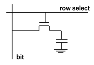 Dynamic RAM: A DRAM cell is made up of a single transistor and a capacitor, as shown in Figure 25.5, leading to reduced cost and storage space. However, this is a destructive read out. It needs to be periodically refreshed, say every 8 ms., but each row can be refreshed simultaneously. For a write operation, we have to drive the bit line and select the row. For a read operation, we have to precharge the bit line to Vdd and select the row. The cell and bit line share charges and there is very small voltage change on the bit line. The sense amplifier can detect changes of ~1 million electrons. Once the read is performed, a write is to be done to restore the value. Refresh is just a dummy read to every cell. The advantage of DRAM is its structural simplicity: only one transistor and a capacitor are required per bit, compared to four or six transistors in SRAM. This allows DRAM to reach very high densities. The transistors and capacitors used are extremely small; billions can fit on a single memory chip. Due to the dynamic nature of its memory cells, DRAM consumes relatively large amounts of power, with different ways for managing the power consumption.