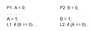 As an example, observe the code sequence below. Here are two code segments from processes P1 and P2:
