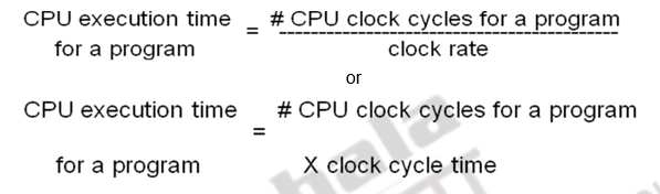 To determine the CPU execution time for a program, you can find out the total number of clock cycles that the program takes and multiply it by the clock cycle time. Each program is made up of a number of instructions and each instruction takes a number of clock cycles to execute. If you find out the total number of clock cycles per program and if you know the clock cycle time for each of these clock cycles, then the CPU execution times can simply be calculated as the product of the total number of CPU clock cycles per program and these clock cycle. Because of the clock cycle time and clock rate being inversely related, this can also be written as CPU clock cycles for a program divided by the clock rate.