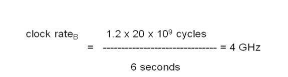 A program runs on computer A with a 2 GHz clock in 10 seconds. What clock rate must a computer B run at to run this program in 6 seconds? Unfortunately, to accomplish this, computer B will require 1.2 times as many clock cycles as computer A to run the program.