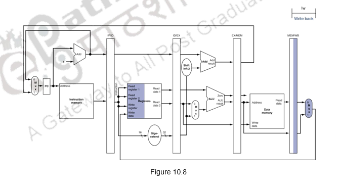 - Buffer MEM/WB holds the data fetched from memory (for a load) for I1, and for the arithmetic and logical operations, the results produced by the execution unit and the destination information for instruction I1 are just passed.