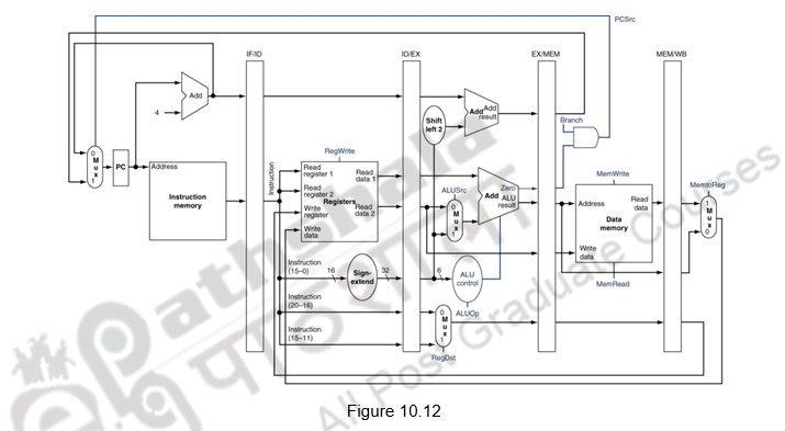 Now, having discussed the pipelined implementation of the MIPS architecture, we need to discuss the generation of control signals. The pipelined implementation of MIPS, along with the control signals is given in Figure 10.12.