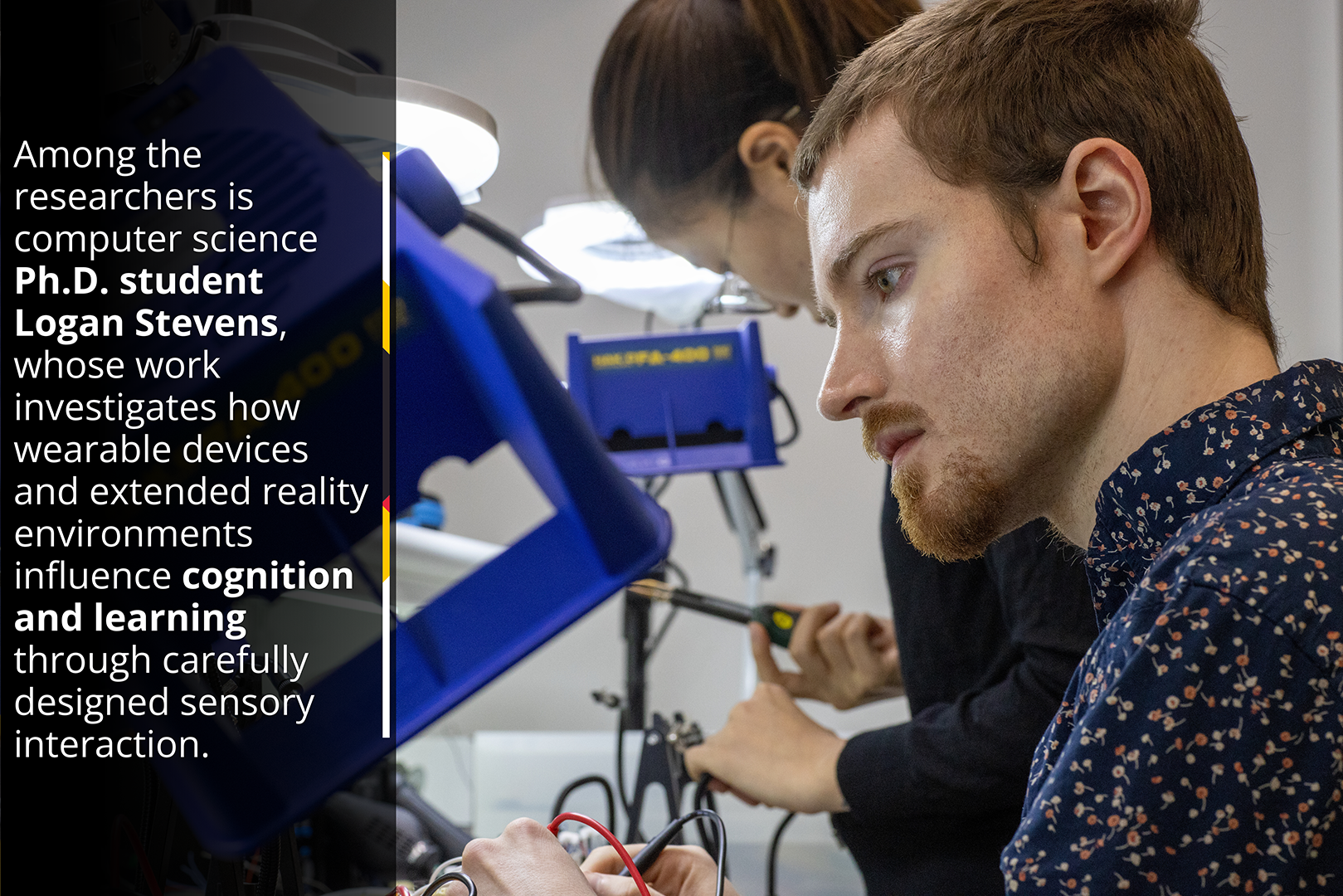 Among its researchers is Ph.D. student Logan Stevens, whose work includes how extended reality technologies can support cognition through carefully designed sensory interaction. This portrait highlights the lab’s research through Stevens’ work, offering a closer look at how embodied computing is shaping new approaches to learning and human-computer interaction.