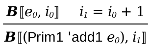 The first rule looks familiar; it’s exactly the semantics of integers from Abscond. The second and third rule are more involved. In particular, they have premises above the line. If the premises are true, the conclusion below the line is true as well. These rules are conditional on the premises being true. This is in contrast to the first rule, which applies unconditionally.