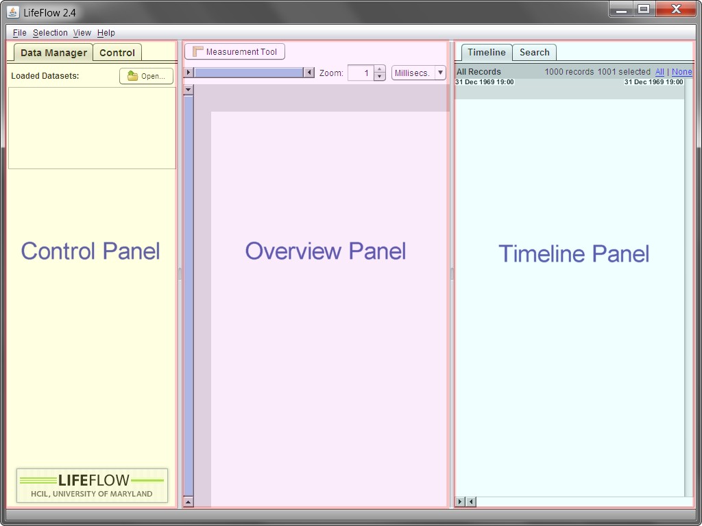 In the following chapter, we will describe how to use the Data Manager Tab to load your data into LifeFlow. The Control Tab, which you will spend more time with, will be described in the rest of the manual.