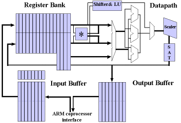 as an integrated co-processor to a standard ARM microprocessor allowing a