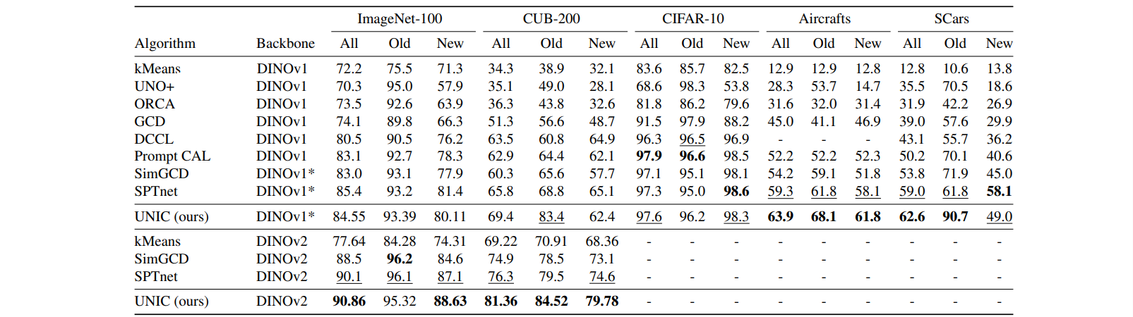 We propose to bridge the gap between semi-supervised and unsupervised image recognition with a flexible method that performs well for both generalized category discovery (GCD) and image clustering. Despite the overlap in motivation between these tasks, the methods themselves are restricted to a single task – GCD methods are reliant on the labeled portion of the data, and deep image clustering methods have no built-in way to leverage the labels efficiently. We connect the two regimes with an innovative approach that Utilizes Neighbor Information for Classification (UNIC) both in the unsupervised (clustering) and semisupervised (GCD) setting. State-of-the-art clustering methods already rely heavily on nearest neighbors. We improve on their results substantially in two parts, first with a sampling and cleaning strategy where we identify accurate positive and negative neighbors, and secondly by finetuning the backbone with clustering losses computed by sampling both types of neighbors. We then adapt this pipeline to GCD by utilizing the labelled images as ground truth neighbors. Our method yields state-of-the-art results for both clustering (+3% ImageNet-100, Imagenet-200) and GCD (+0.8% ImageNet-100, +5% CUB, +2% SCars, +4% Aircrafts).