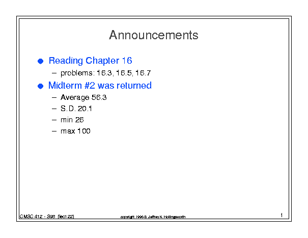 CMSC 412 - Class 22 (April 23, 1998)